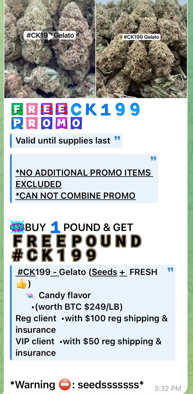 🛍BUY 1️⃣ POUND GET FREE POUND#CK199 – Gelato (Seeds + FRESH 👍)